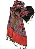 .../ Women's Floral Print Shawl Wrap in Deep Red/black Multi 30" W X 80" L / Black Shawl